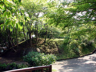 ▲東側の腰曲輪から内堀を越えると、その先は芝生広場。