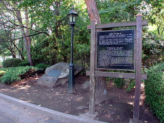 ▲盛岡城跡公園(岩手公園)・中津川畔よりの、芝生広場の「岩手公園」と題した宮沢賢治詩碑。