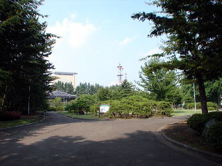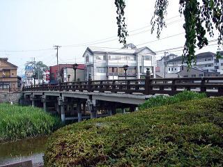 下の橋門跡から、下の橋を渡った先にある新渡戸稲造生誕地。