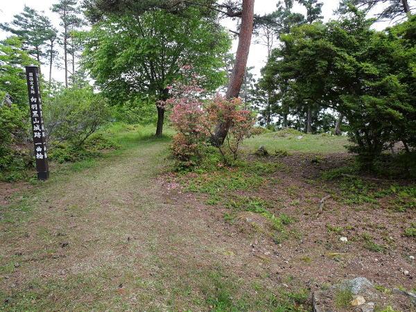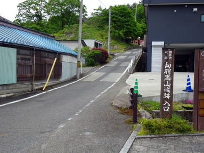【向羽黒山城跡入口】![]() 手前には、向羽黒山城跡整備資料室(向羽黒ギャラリー)が建っています。ここから主郭(岩崎山)までは、観音山、羽黒山を超えて行きます。 訪問(2022年5月16日)に際しては、公共交通機関を使用せず、西若松駅からタクシー利用し、城跡見学後も迎えに来てもらいました(片道約3千円前後)。 なお、西若松駅にはタクシーが常駐しており、会津本郷駅(JR)、南若松駅(会津鉄道)には常駐していません。 |