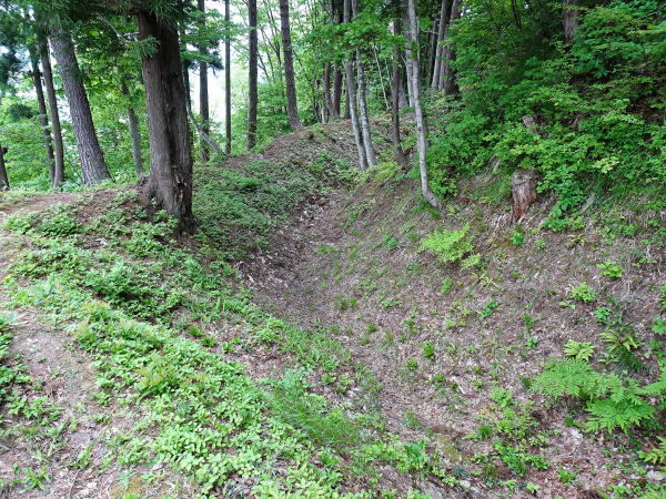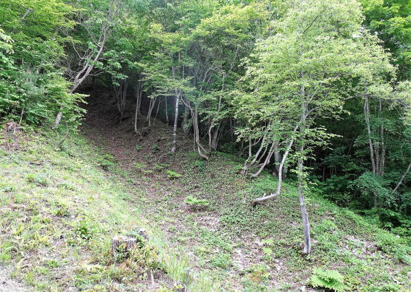 ![]() 堀切 堀切は、そのまま竪堀となって落ちる。 向羽黒山城の続きへどうぞ |
