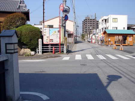![]() 外堀くすのき通り 外堀くすのき通りは、長浜城のもっとも外を囲う外外堀跡。この堀から西(道路左側)が城内であった。 |