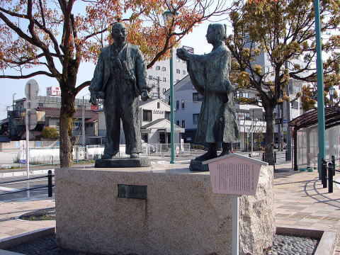 ![]() 長濱の地名起源歌碑 「君が代も わが代も共に 長濱の 真砂のか須の つき屋らぬまで」竹中半兵衛の歌碑を刻む。この歌が長浜の地名の起源になったとされる。 |