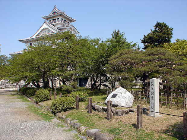 ![]() ■太閤井戸碑 天守の西の湖岸にある。長浜城築城時に秀吉が掘らせたといわれている。 |