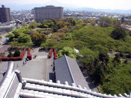 ![]() ■天守からの眺め 豊公園とJR長浜駅方面を望む。長浜駅は中央のマンション右下になる。 |