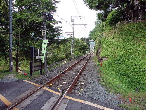 ![]() ▲野牛郭(線路左)と本丸の間を貫通するJR飯田線 線路右は本丸の土塁と堀。かつては線路上にも土塁が築かれていたと推定され、線路によって分断されている。 |