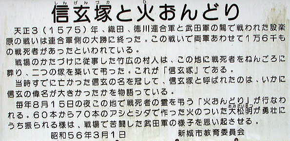 ◆天正3年(1575)11月徳川家康は、奥平貞昌を城主に任命し城郭整備。5月、武田勝頼の猛攻に耐える。(現地説明板より)