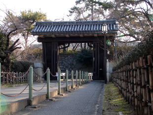 ▲正門〜明治43年に旧江戸城内の蓮池御門が移築されたが、第二次世界大戦により焼失したため、昭和34年、天守閣と共に再建された。