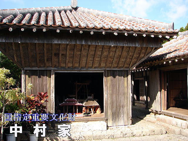 | 中村家住宅は戦前の沖縄の住居建築の特色をすべて備えている建物。沖縄本島内でこのように屋敷構えがそっくり残っている例はきわめて珍しく、当時の上層農家の生活を知る上にも、貴重な遺構である。 国の重要文化財に指定されている。 |