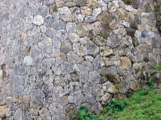 中城城跡を含め沖縄のグスクは本土より古い時代から石積技術が発達していた。 その石積みの種類は、大きく分けて野面積み、布積み、あいかた積み(亀甲乱れ積み)がある。 |