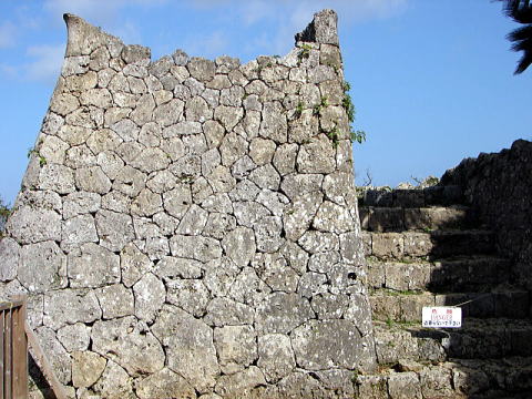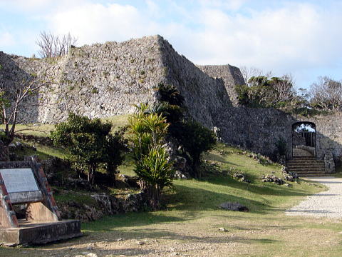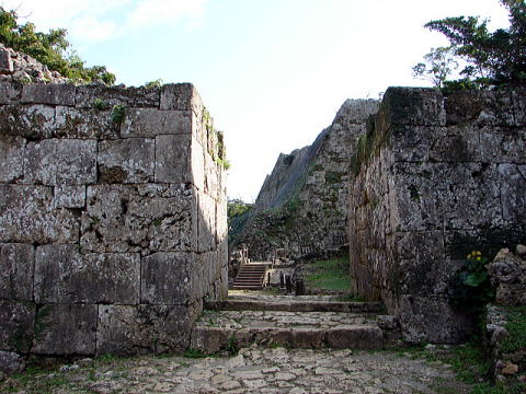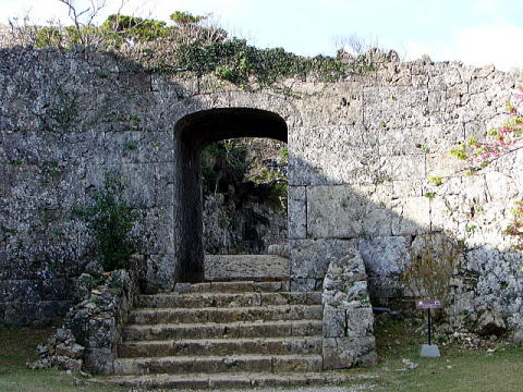 | 【文化財指定区分】国指定史跡・世界文化遺産 | 【遺構】建造物はないが、石造拱門、石垣、郭が残る。300余もあるとされる沖縄のグスクの中で最も遺構がよく残っていることで知られている。 |