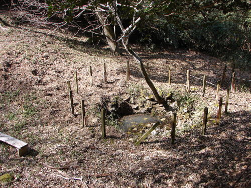 ![]() 釣井の段(井戸郭)の大井戸 釣井の段には、円形石積井戸が6ヵ所あり、今なお、清水を湛えたものもあり、城主をはじめ多くの家臣団の城内生活を物語るものである。 上下二段からなるこの井戸郭は、東西南北ともに50m余という城内最大の郭である。 |