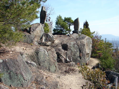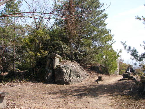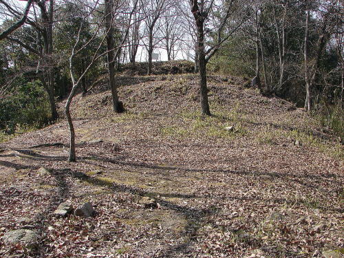 ![]() 詰の丸跡 東端の最高部である詰の丸には、巨石が露出しているが、この上に櫓をあげていたものと思われ、近世城郭の天守台にあたる郭である。 |