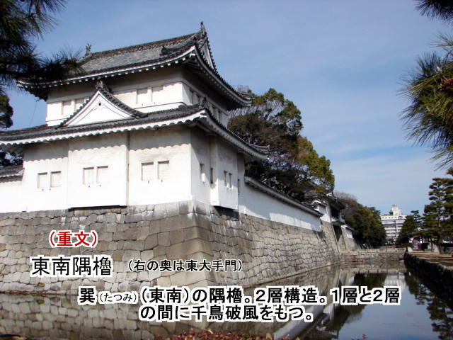 外堀沿いに建つ巽(東南)の2層隅櫓。右奥の東大手門につづく。