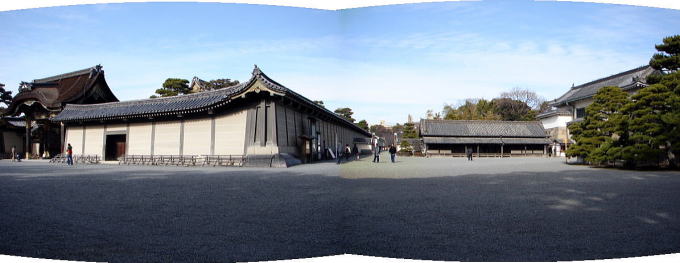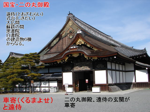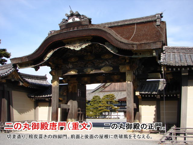 寛永3年(1626)、3代将軍徳川家光が天皇の行幸を仰ぐために造営された御殿。天明8年(1788)の大火で類焼するが、のち明治26年(1893)、京都御所内の旧桂宮御殿が移築され、4棟からなる宮家の遺構が完全な形で保存。