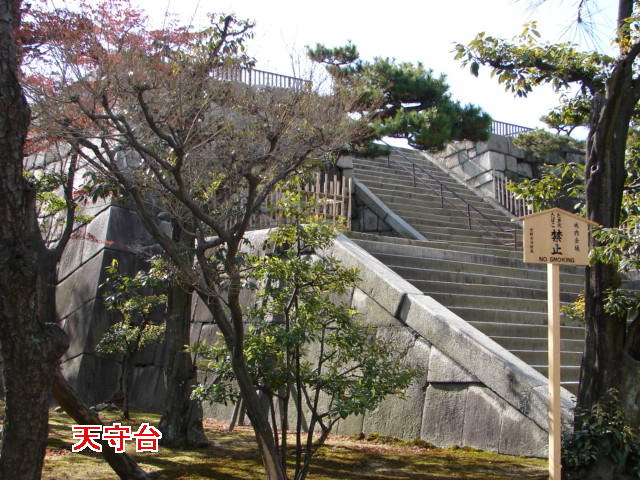 天守は、寛永1年(1624)、伏見城から移され、大規模な改修を施されたが、寛延3年(1750)の落雷で焼失。いまは台座の石垣だけが残る。