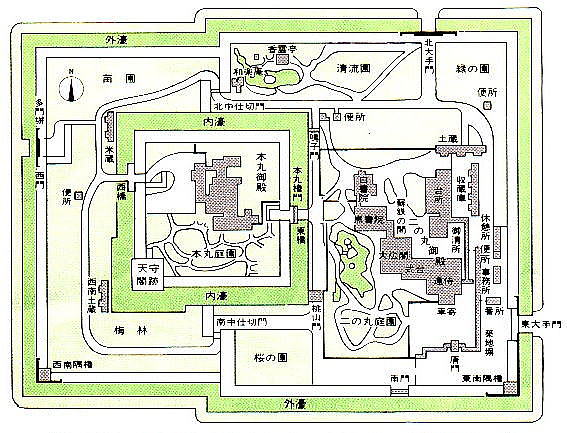 | 二条城について | ■二条城は、慶長8年(1603)徳川初代将軍家康が、京都御所の守護と将軍上洛のときの宿泊所として造営し、3代将軍家光により、伏見城の遺構を移すなどして、5重天守や本丸御殿などが造られ寛永3年(1626)完成、現在の規模となった。 ■したがって、豊臣秀吉の残した文禄年間の遺構と家康が建てた慶長年間の建築と家光がつくらせた絵画・彫刻などが総合されて、いわゆる、桃山時代様式の全貌をこの城に見ることができる。 ■慶応3年(1867)15代将軍慶喜の大政奉還により、二条城は、朝廷のものとなり、ついで明治17年(1884)離宮となり、昭和14年(1939)京都市に下賜され現在に至る。 |