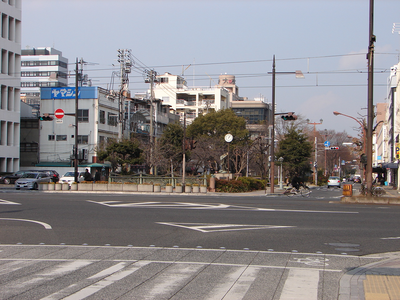 ![]() 西川橋交番対面の西川橋北側 ここから北方向の南方に向かっても緑道公園が設けられており、その入口となる所。 |