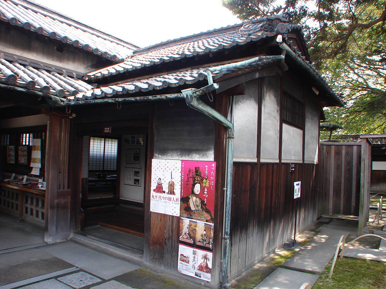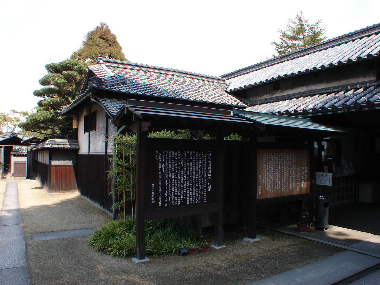 ![]() ▲長屋門 長屋門の石垣は、鉢巻積みの工法によるもので、7段の石段を上がると右に桃座敷、左に南座敷がある。このような門造りは、江戸時代の大庄屋建築のなかでも特に壮麗であり、天保9年(1838)に竣工している。 |