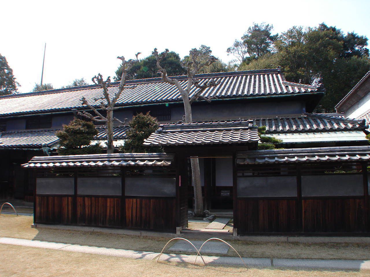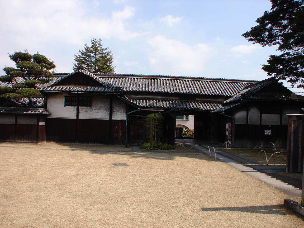 ![]() ▲長屋門<国重要文化財指定建造物> 長屋門を入ると、濃い緑を背景とした本瓦葺の主屋群が軒を連ねて美しく、これに並んで威風堂々と軒を連ねる土蔵群がある。 |