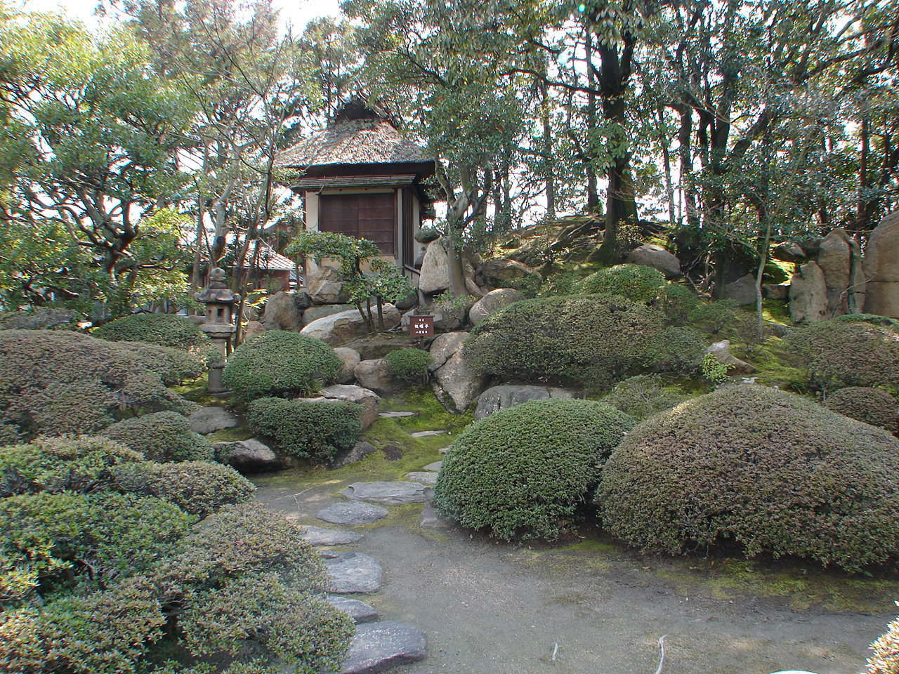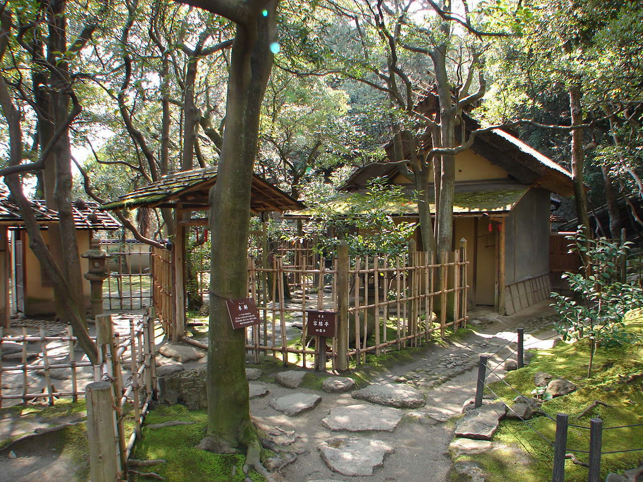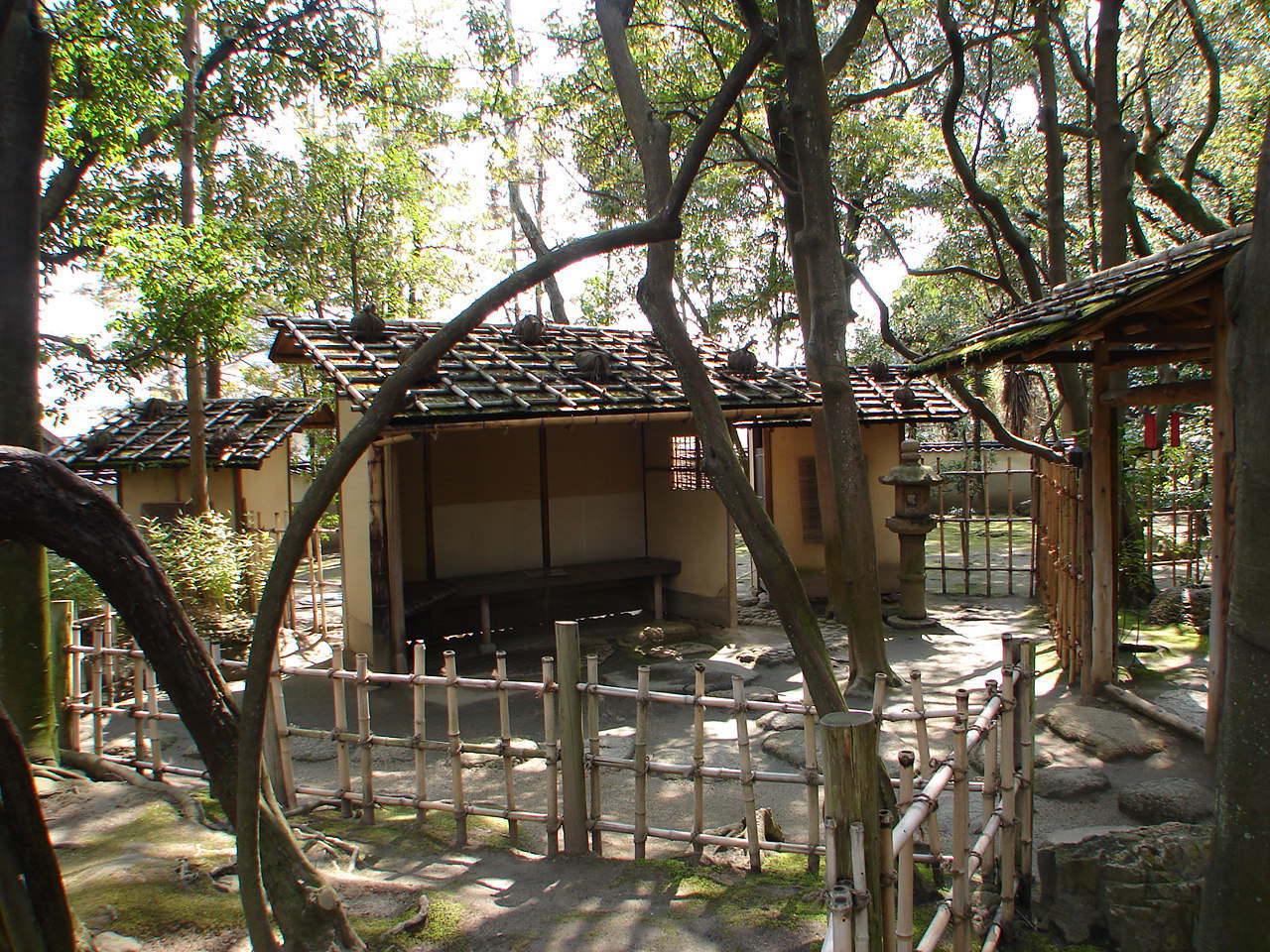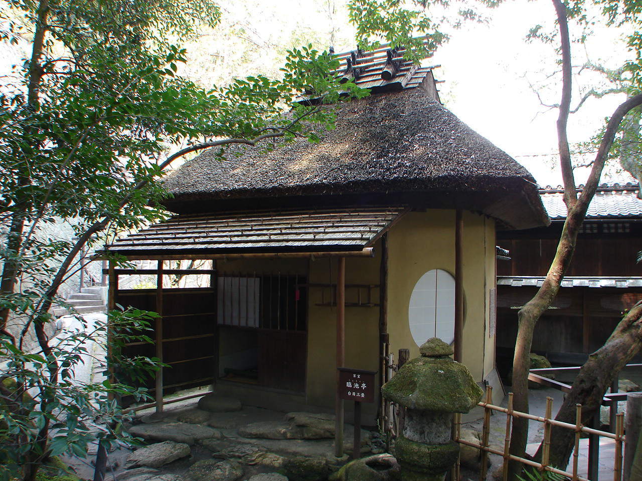 ![]() ▲観曙亭(かんしょてい) 庭内には、観曙亭・容膝亭(ようしつてい)・臨池亭(りんちてい)の三席の茶室がある。 |