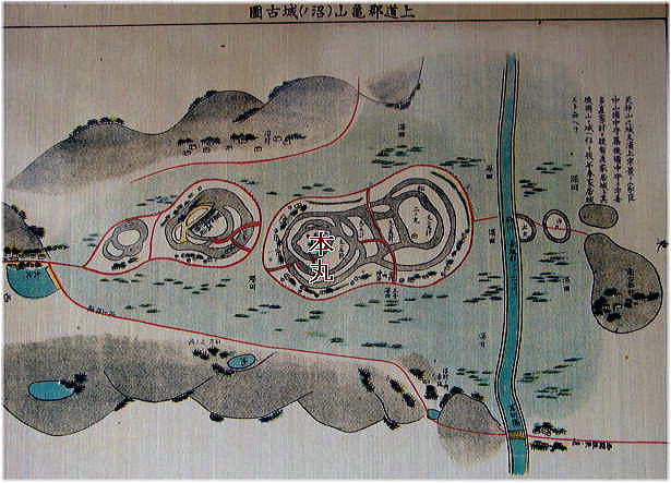 上道郡亀山(沼ノ)城古図![]() (現地説明板より) |