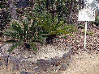 赦免花伝説 関ヶ原の戦いに敗れ八丈島に流された秀家公の菩提寺宗福寺に二株の蘇鉄がある。この蘇鉄の花が咲いた時、なぜか赦免があったと言われている。 文政年間に六十九人、天保年間に四十一人、弘化年間に六十四人、嘉永年間に二十四人の流人が赦免されたが、宇喜多一族には何の沙汰もなく、明治になって罪がゆるされたのであった(説明板より)。 |