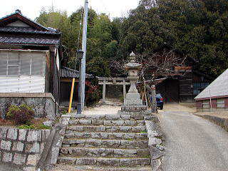 ![]() 鳥居をくぐり、石段を登る |