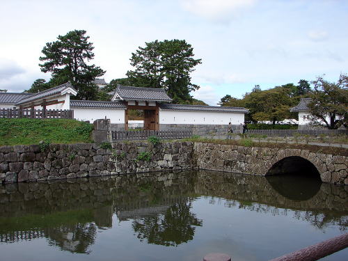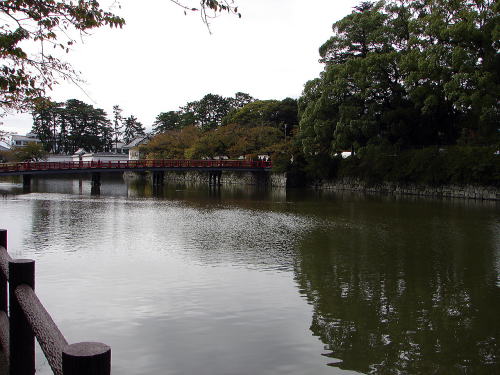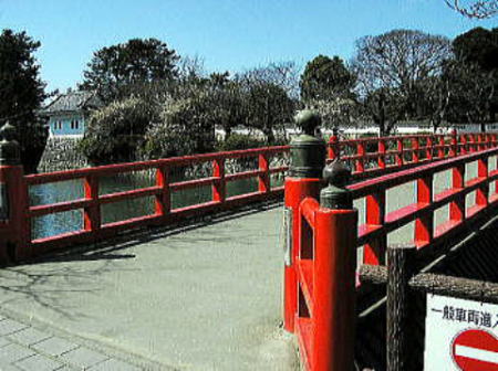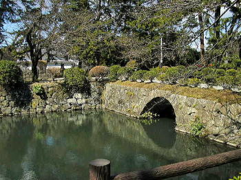 ![]() ▲二の丸東堀に架かる学橋 学橋(まなびばし)のたもとには、幕末まで藩校集成館(しゅうせいかん)があった。 |