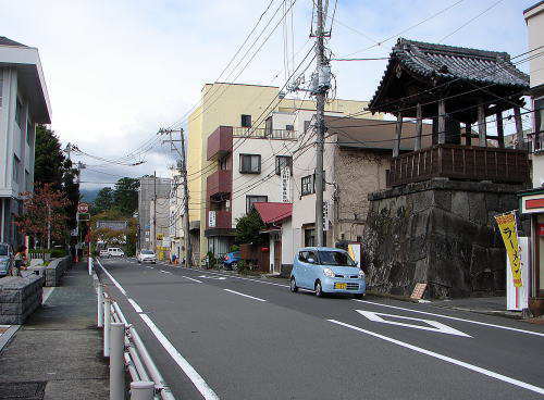 ![]() ▲箱根口周辺 江戸初期、城主稲葉氏によって大改修が行われ、東海道からまっすぐに城内に入れたものを改め、木戸を通り左に折れてから、さらに鉤の手に折れて桝形門(ますがたもん)に入る厳重な形に直された。 |