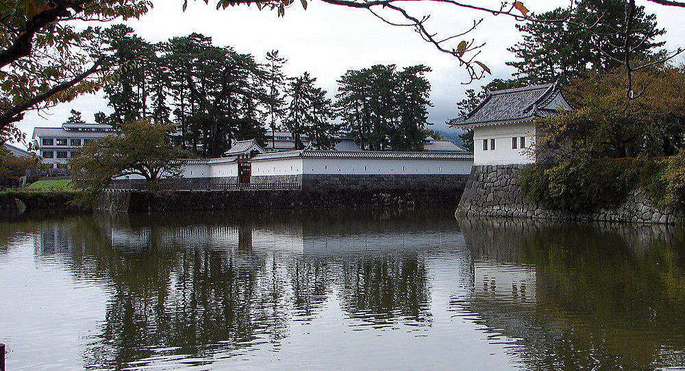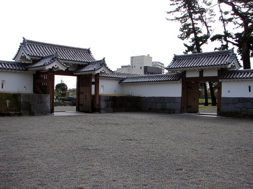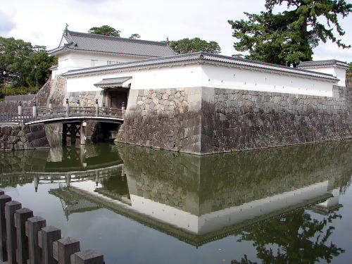 ![]() ▲二の丸東堀越しに望む「馬出門(左側)」と「二の丸隅櫓」 |