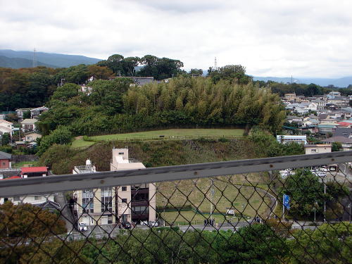 ![]() ▲小田原城天守から見た八幡山古郭・東曲輪 小田原城と東曲輪の間には、JR東海道本線が通る。 |