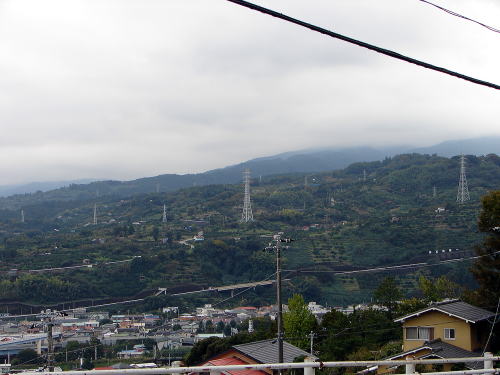 ![]() ▲小峰御鐘ノ台から望む石垣山一夜城 写真中央の鉄塔後方辺りが石垣山一夜城となり、小田原城から約3Kmの距離である。 |