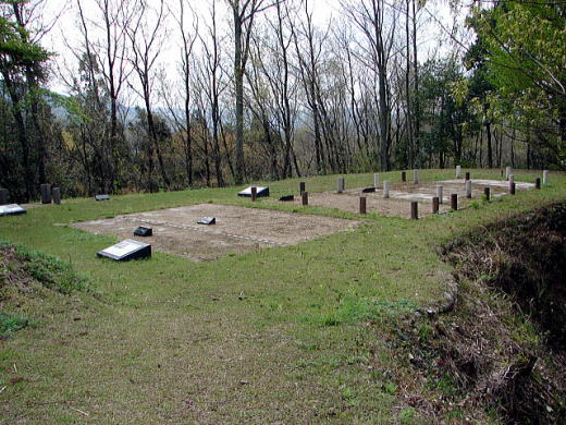 門跡は2本の柱(鏡柱)と控え柱で構成されている。ここに、東側下手からの城へ登る通路があった。