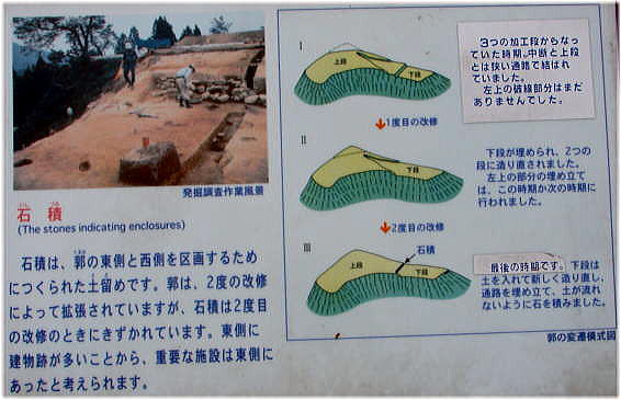 門の北側には、土塁が築かれ、南側には土塀が続き、郭の内外を区画していた。