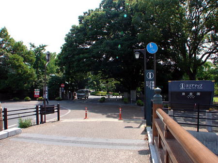 ![]() ▲御舟入跡(おふないりあと) 藩主が城から舟で渡ってきた時の舟着場の跡で藩主が入る御成御門があった。大正時代に外園散歩道をつけた時に入口の大部分を閉じたが、竹林に囲まれた中に、そのなごりを伝えている。 |