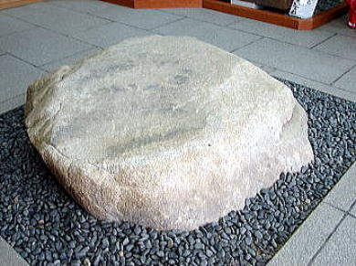 ![]() 旧天守の心柱の礎石 心柱は3階まであったと考えられている(天守1階に展示) |
