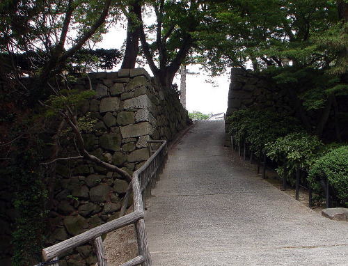![]() 坂谷門跡(門外側) 門の後方は天守。 |