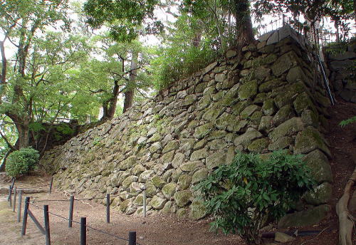 ![]() 本丸石垣 腰曲輪の風呂谷曲輪から見た石垣。 |