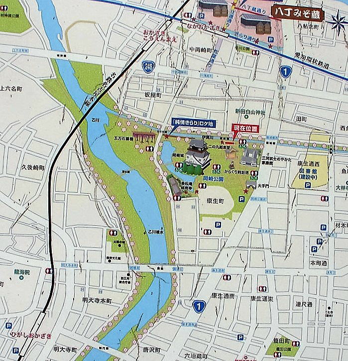 ![]() 名鉄名古屋本線「東岡崎」駅から徒歩約15分(案内図は現地案内板より) 地域別訪問城に戻る |