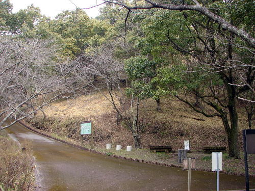 ![]() ▲舗装された園路 園路から段(曲輪)へ至る道も遊歩道として整備され、各所に説明板も立ち、散策しながら学習できる歴史公園です。 |
