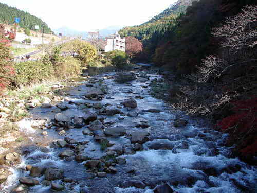 ![]() 大釣橋周辺 大釣橋から下流に向かって続く遊歩道一帯が奥津渓の紅葉スポット。 |