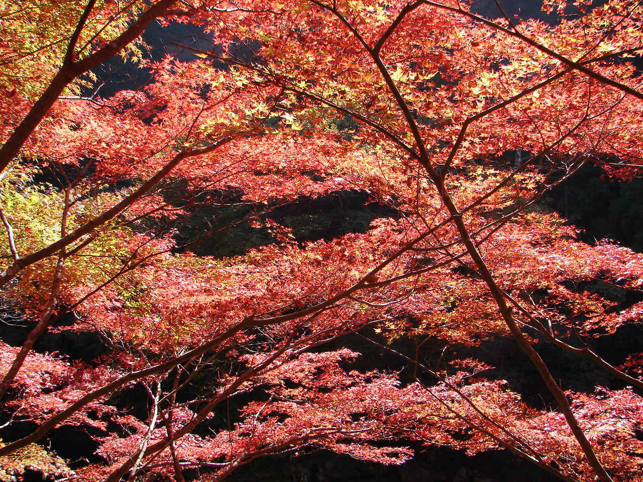 ![]() 奥津渓谷 大釣橋から見た紅葉と渓谷。 |