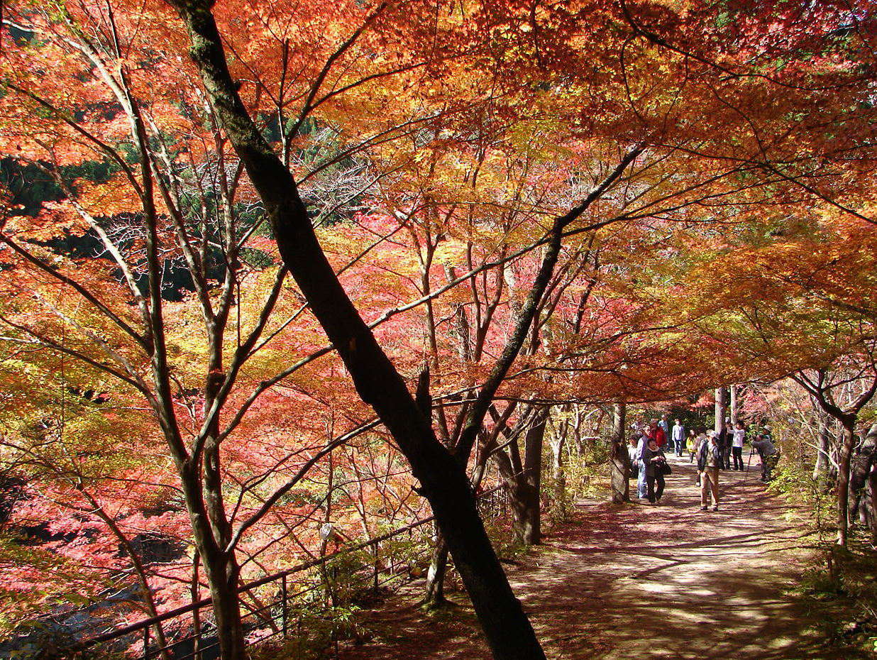 ![]() もみじ祭り期間中はライトアップされ、近くの奥津振興センターでは観光イベントが繰り広げられる。なお、祭り期間中の土日・祝日は町道のマイカー乗り入れが禁止され、同センターから有料シャトルバスが運行。 |