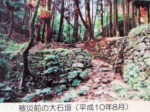 ![]() 2019年3月現在の大石垣 新しく積み直された大石垣。石垣左側へは立入禁止となっており、横からしか写真は撮れませんでしたので、現地説明板に掲載の写真を(右)(下)に載せました。 |