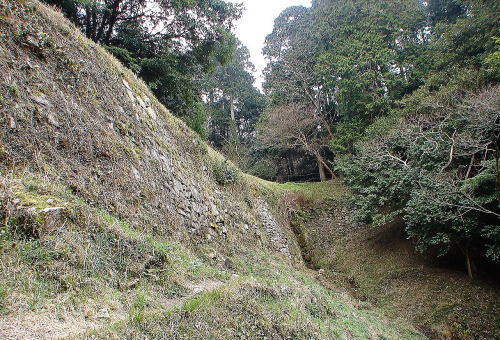 ![]() 門跡横の石積 |