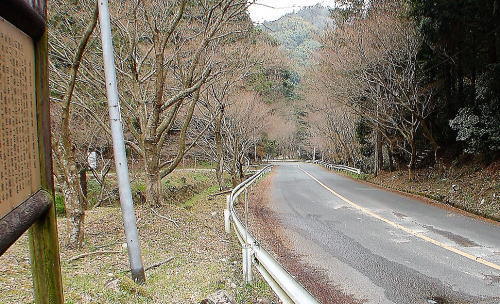 ![]() 北石垣への登り口 林道左側は百間石垣で、その向かいの林道右側に登り口があります。写真右側のガードレールと盛土の境にあります。 北石垣に辿り着くまでは、急勾配の登りが続き大変でした。 |