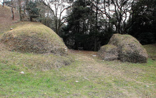 ![]() 土塁上から焼米ヶ原(やきごめがはら)を望む |