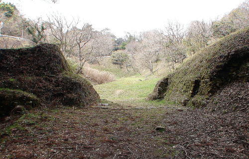 ![]() 「全体図」現在地(太宰府側)から見た城門 |
