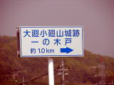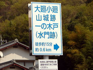 大廻小廻山城跡山頂へは、一の木戸跡へ入る地点から、県道96号線を北東(瀬戸駅方面)に行った地点にある看板(下写真)の所を右に行きます。![]() |